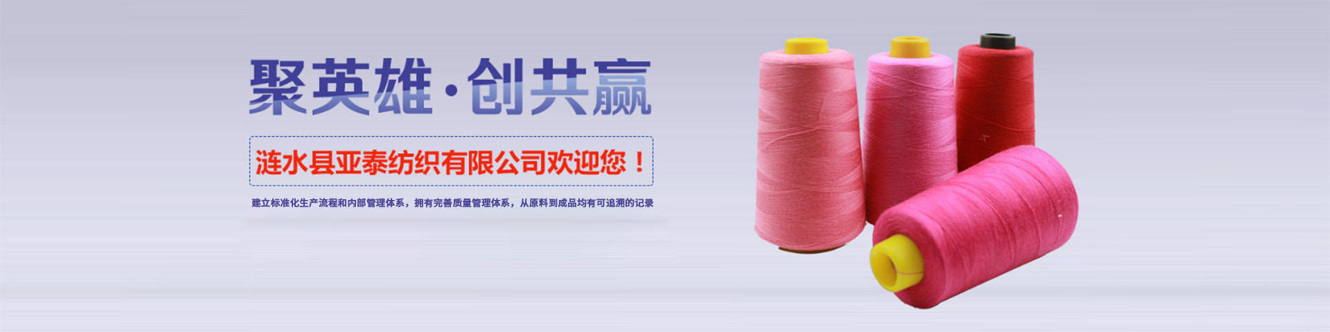漣水縣亞泰紡織有限公司位于江蘇漣水縣,公司專業(yè)生產(chǎn)各種縫制線、織帶織布線、漁網(wǎng)線、輪胎線、風(fēng)箏線等產(chǎn)品,廣泛應(yīng)用于服裝、鞋帽、皮革、箱包、家紡、帳篷、漁業(yè)、勞保用品、運動用品、特種行業(yè),材質(zhì)有滌綸、錦綸、氨綸等,滿足各行各業(yè)對線的需求。公司始創(chuàng)于1998年,擁有整套先進的染色制線設(shè)備,專業(yè)的技術(shù)管理人員,先進的生產(chǎn)工藝。歡迎您光臨指導(dǎo)、洽談合作!